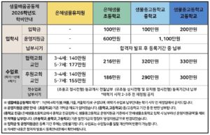 • 중학교 진급시는 납부한 운영지원금 및 기탁금 모두 중고등 운영지원금으로 이관되며 중고등 운영지원금 차액은 각 가정에서 부담하여야 합니다. 진급 포기시 운영지원금은 반환되지 않습니다.