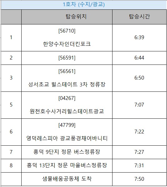 교장선생님 인사 교육과정과 교사 교육과정과 교사 창의적 체험교육 학교생활 이야기 학부모 지원 증명서 발급 신청 성적관리시스템 교칙과 각종 자료 학부모교실 안내 학사 일정과 시간표 셔틀버스 노선 샘물배움공동체 샘물배움공동체 은혜샘물유치원 은혜샘물초등학교 샘물중고등학교 Menu 교장선생님 인사 교육과정과 교사 교육과정과 교사 창의적 체험교육 학교생활 이야기 학부모 지원 증명서 발급 신청 성적관리시스템 교칙과 각종 자료 학부모교실 안내 학사 일정과 시간표 셔틀버스 노선 샘물배움공동체 샘물배움공동체 은혜샘물유치원 은혜샘물초등학교 샘물중고등학교 셔틀버스 안내 2026학년도 봄/여름학기 셔틀버스 노선과 운행 안내드립니다. 운행노선: 등교 2개 노선, 하교 1개 노선 탑승대상: 중고등학생 (학기 시작 전, 사전 신청 필수) 등교버스 노선 및 시간: 각 노선표 확인 하교버스 노선 및 시간: 학교 출발 - 어정/기흥역 운행 (16시 40분 출발, 별관 D동 탑승) 탑승 비용: 등하교 차량 회당 약 7,000원 청구안내: 학기별 활동비 청구 안내 셔틀버스는 가정에서 납부하는 탑승비용 안에서 운영이 되고 있습니다. 학기 중간에 탑승하지 않아도 동일금액이 청구되니 양해 부탁드립니다. (탑승인원이 줄어도 업체의 운행비용이 동일합니다.) 노선이 매년 신청 상황에 따라 추가되거나 폐지될 수 있습니다. 셔틀 당 최소 탑승 인원은 10명이고 이에 미달할 경우 해당 노선은 운행하지 못할 수 있습니다. 하교버스 노선 신청자에 한해 16:40 학교출발 - 어정/기흥역까지 운행합니다.